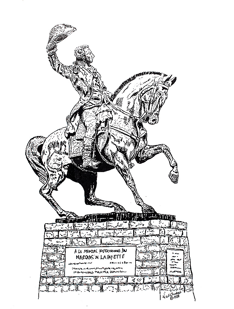 Pen & Ink, Lafayette Statue, Haverhill, MA
